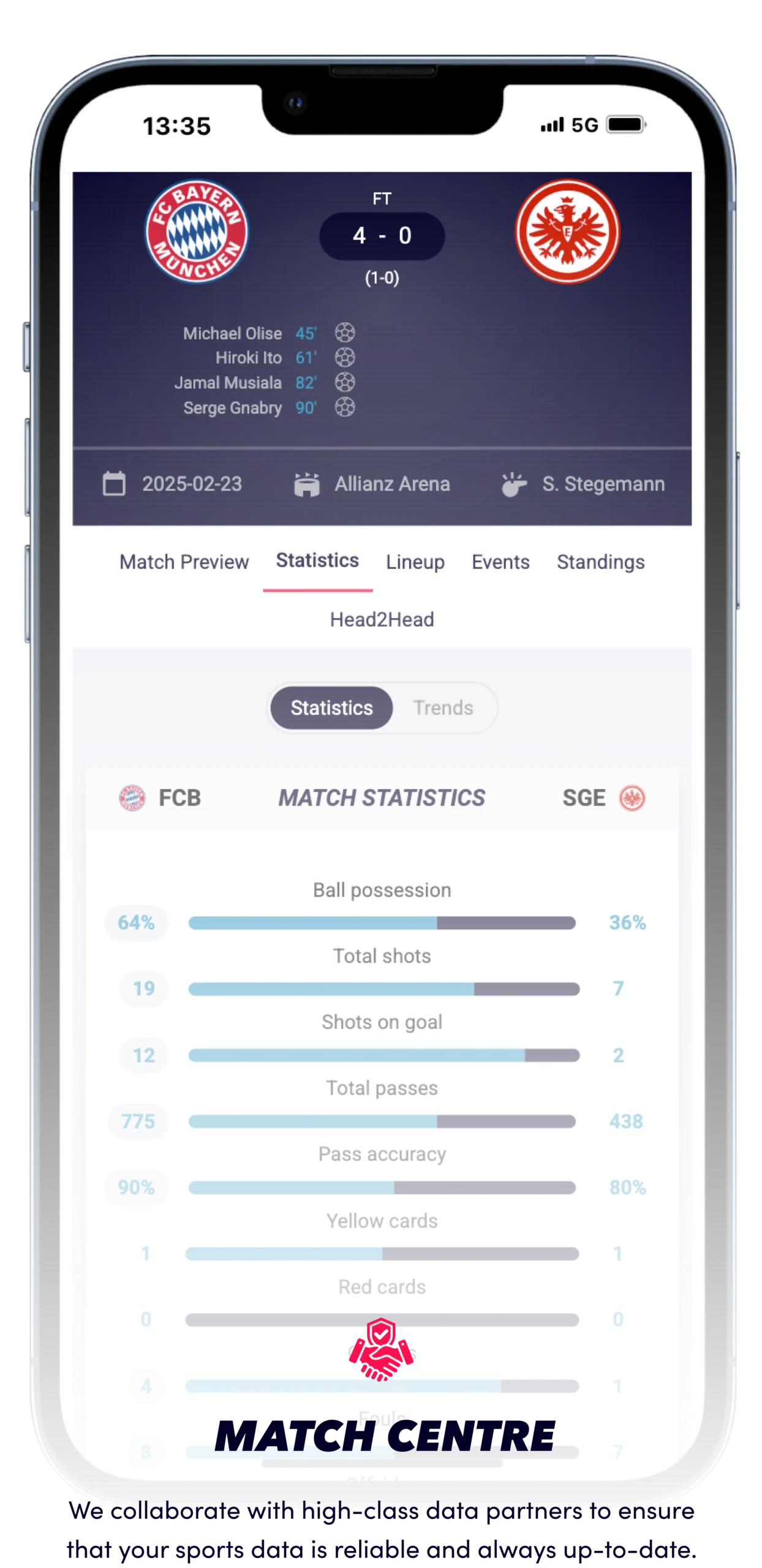 Das Livescore Widget zeigt alle Spiele eines einzigen Tages an. Die Spielergebnisse und Ereignisse wie Tore, Karten und Auswechslungen werden ebenfalls angezeigt. Die erweiterte Version des Livescore Widgets zeigt sogar ein komplettes Match Center mit einer Anzeigetafel, Ligainformationen, Aufstellungen, Trainern, Schiedsrichtern, Kommentaren und allen anderen wichtigen Spielinformationen.