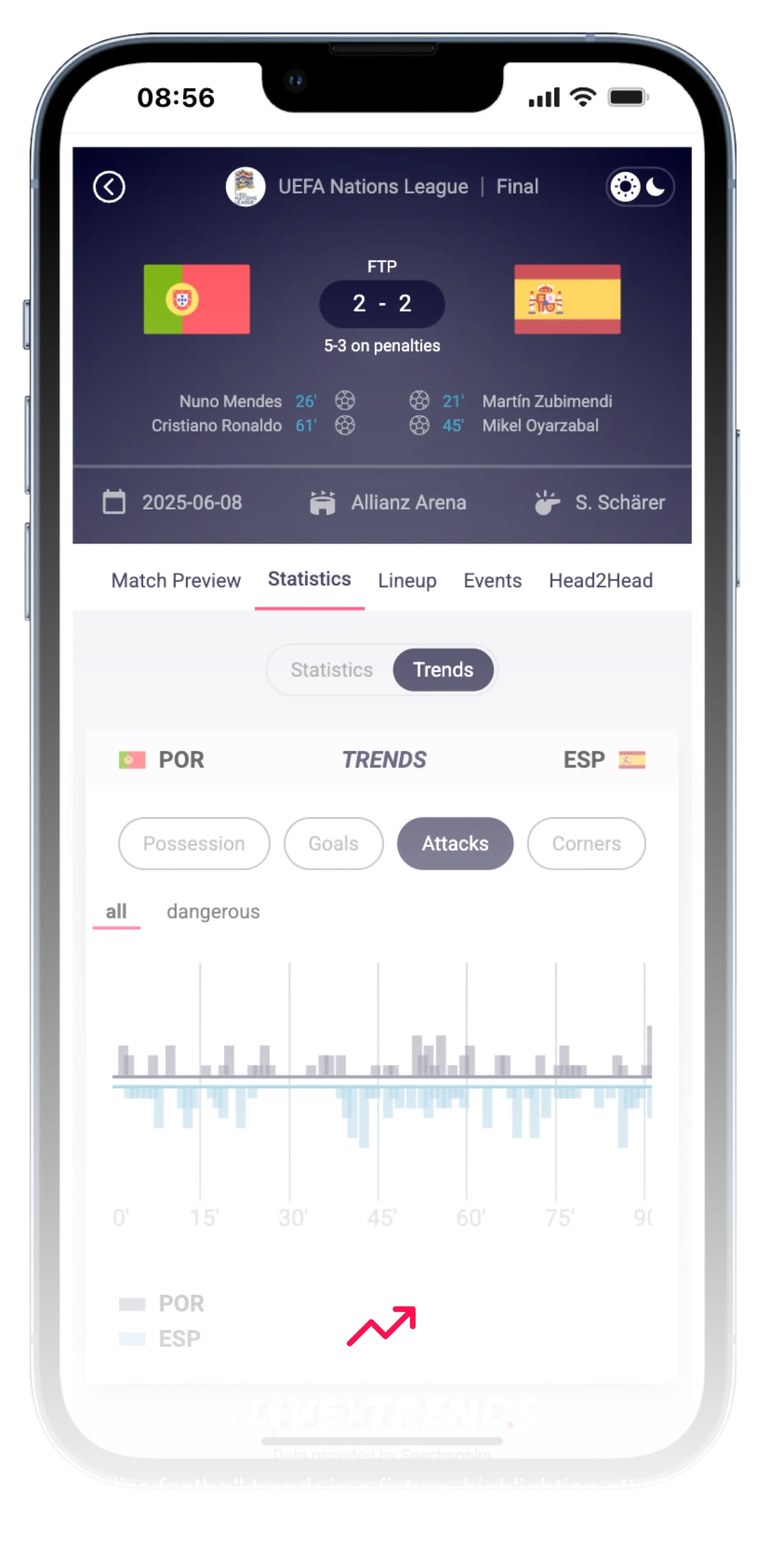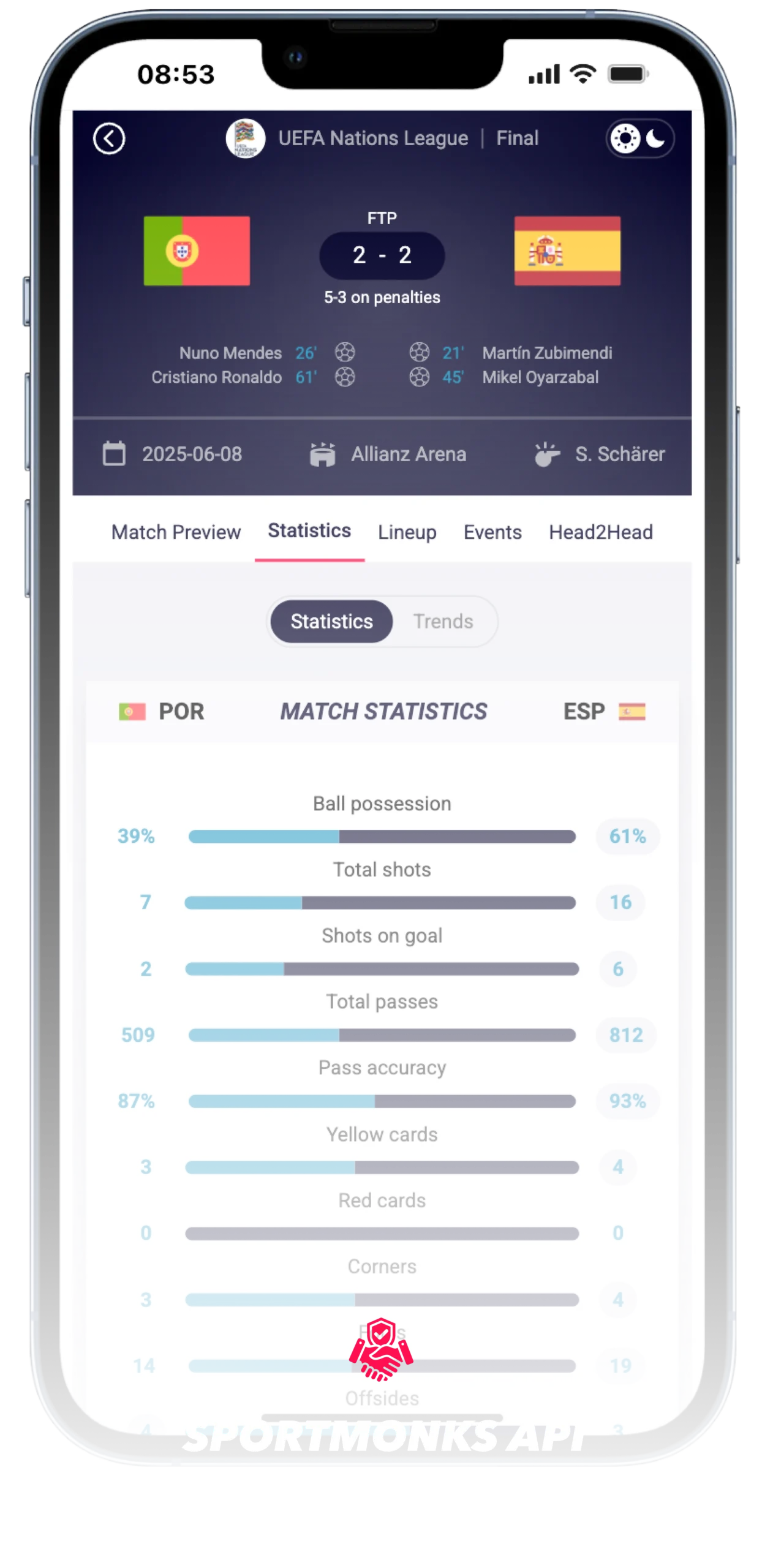 – Football stats apps & websites: Create rich football experiences with live results, detailed statistics, and historical data from the UEFA Nations League. Whether it’s a mobile app or a media website, your users stay informed and entertained.